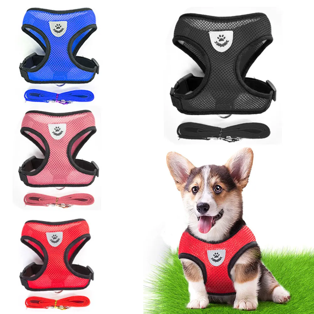 Oversized Chihuahua Pug Bulldog Cat Breathable Puppy Pet Harness and Puppy Cat Vest Harness Collar Set