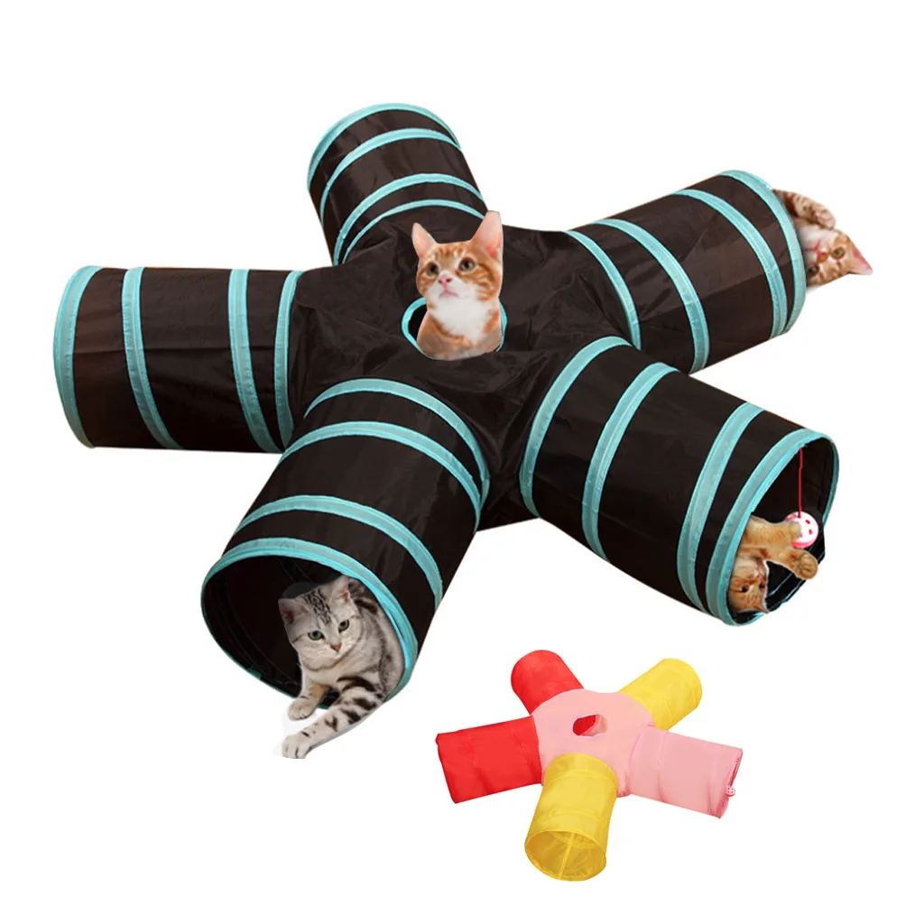 Складной туннель для кошек игрушки 2/3/4/5 отверстия для домашних животных кота обучающая игрушка Интерактивная трубка забавная игрушка для к...