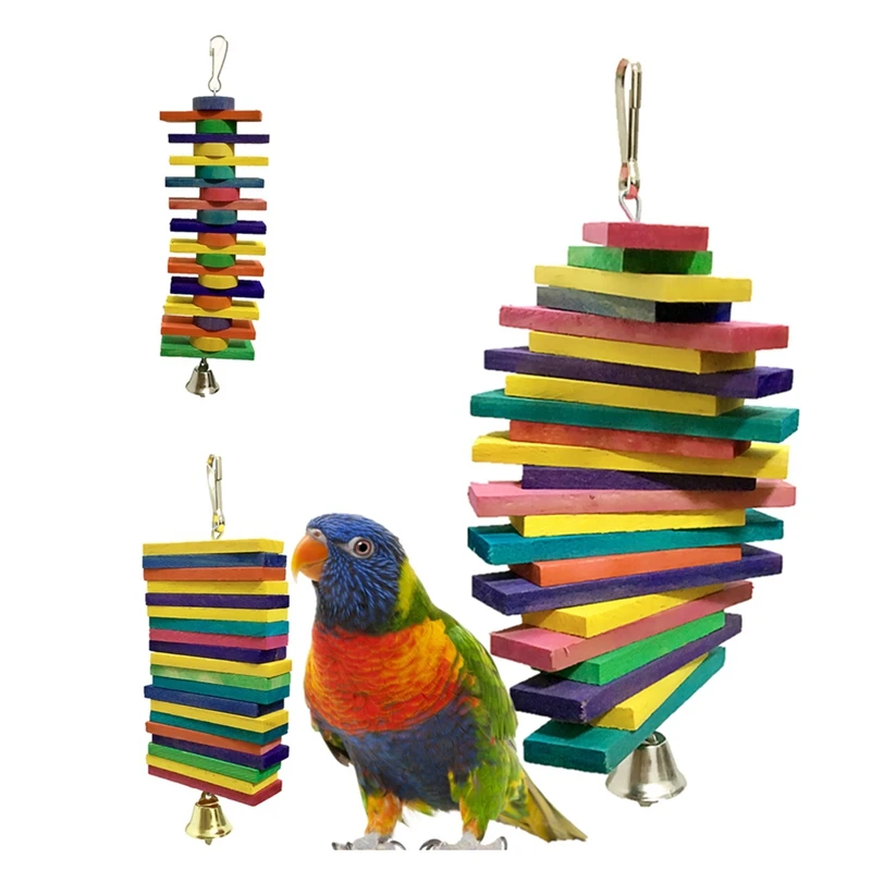 Игрушка для домашних животных, строительные блоки, жевательная устойчивая к укусам игрушка, подвесная красочная деревянная клетка для попугая