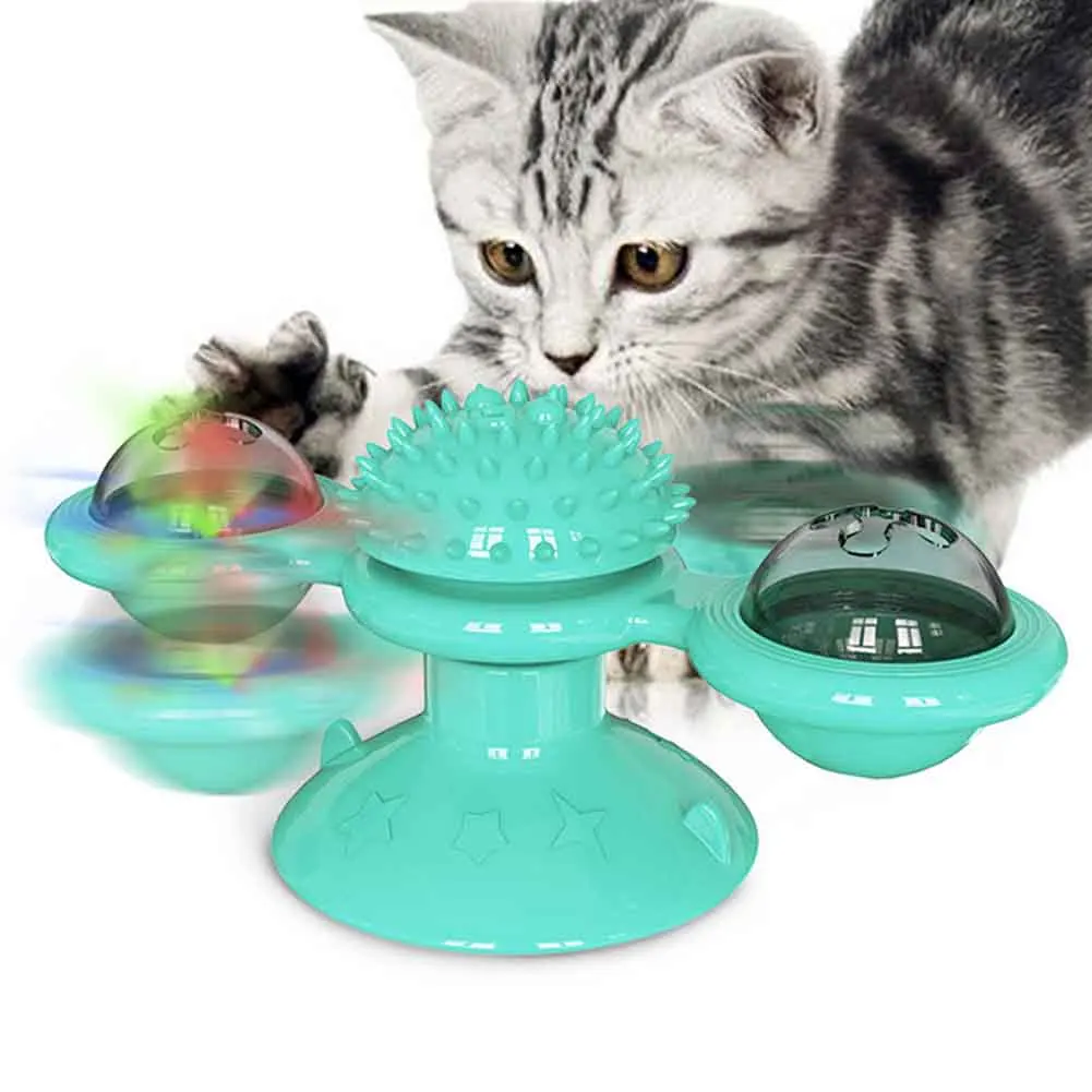 Windmill Cat Toy With Led Ball Soft Massage Kitten Educational Pet Tickle Scratching Turntable Teasing Interactive Play Game