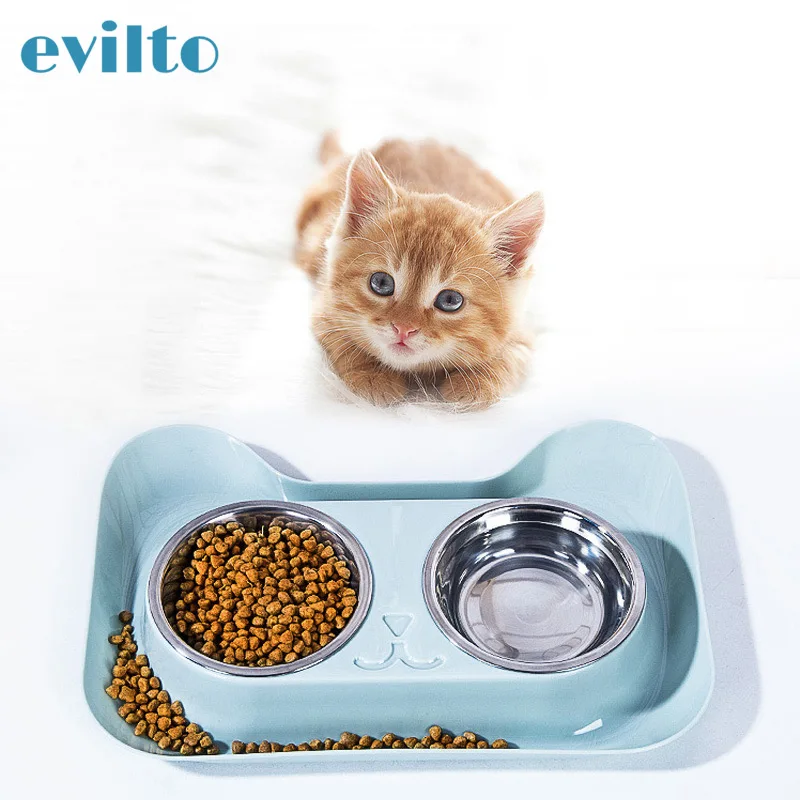 Двойная миска для кошек Pet Еда подачи воды милый из нержавеющей стали, для щенков питьевой Блюдо Собака чашечный питатель с нескользящей под...