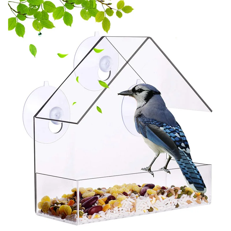 Кормушка для птиц, акриловый прозрачный поднос для просмотра окон, кормушки для птиц, присоска для птиц, крепление для дома, кормушка 15x7x16cm