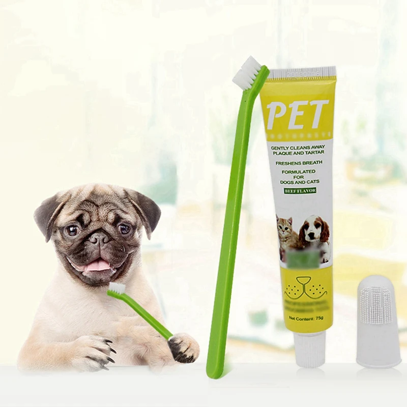 Зубная паста и зубная щетка с ароматом говядины для домашних животных, товары для чистки зубов, здоровая съедобная зубная паста для ухода за...