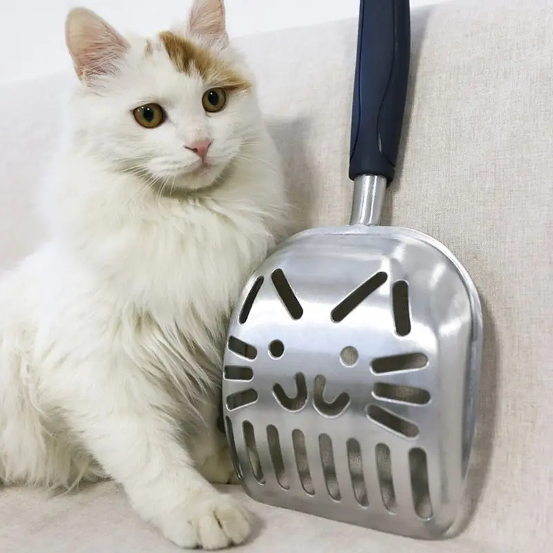 Металлическая совок для кошачьего наполнителя кошачья форма просеиватель для собак лопатка для уборки лотка с резиновой ручкой C63B