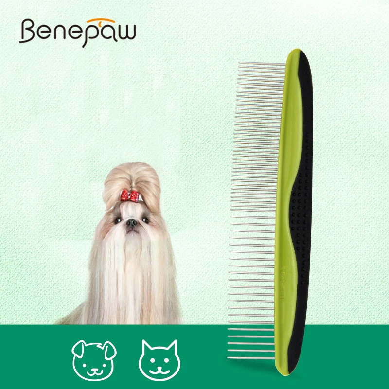 Профессиональная расческа для домашних животных Benepaw, из нержавеющей стали, безопасная, с круглыми зубцами, противоскользящая, щетка для щенков, с удаленными углами, с неровным мехом