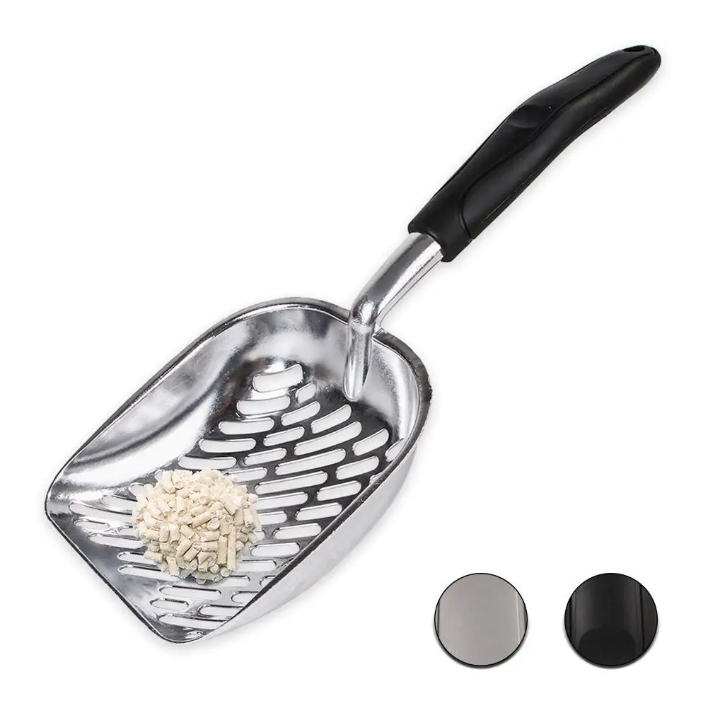 Совок для кошачьего туалета, большой металлический совок для кошачьего туалета, сито с глубокой лопатой и эргономичной ручкой из сверхпрочного цельного алюминия