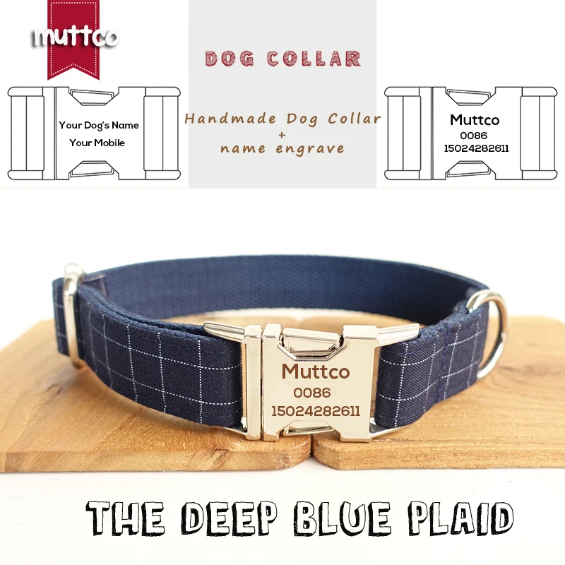 MUTTCO Leser выгравированы ошейник розничной продажи Прохладный плед воротник ручной работы ошейник DEEP BLUE plaid 5 размеров ошейник UDC021