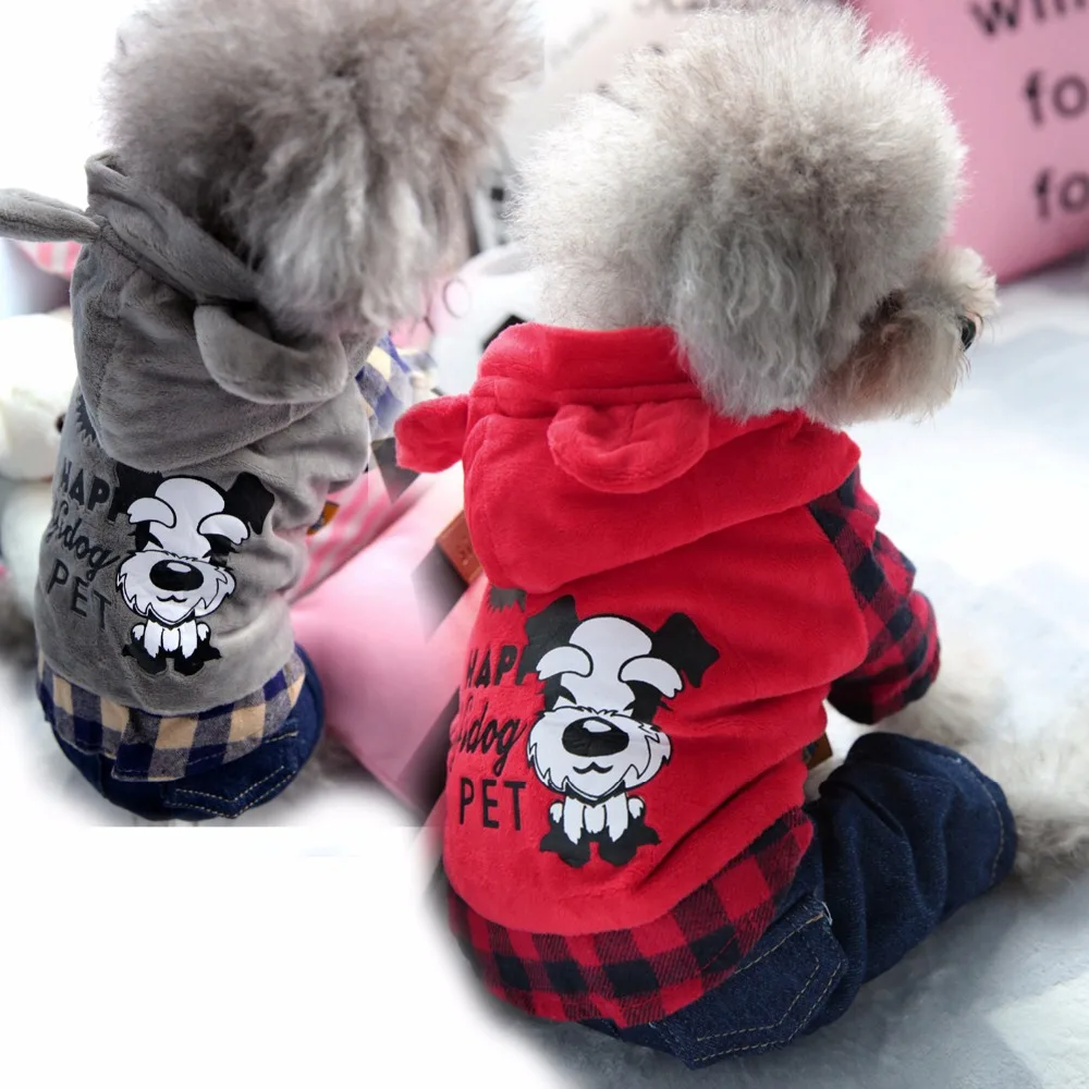 Костюмы Happy Dogs для домашних животных, маленькие животные, новые милые уши, зимняя теплая Толстая куртка с капюшоном, Комбинезоны для щенков, кошек, пород пуделя