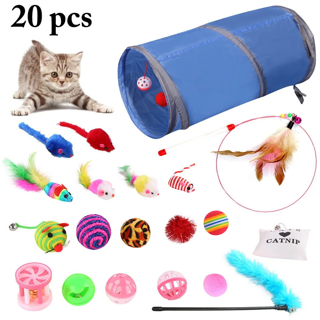 Игрушка для кошек 20 шт./компл. набор для домашних животных складной туннель игрушка для кошек Забавный звонок перо в форме мыши домашнее жив...