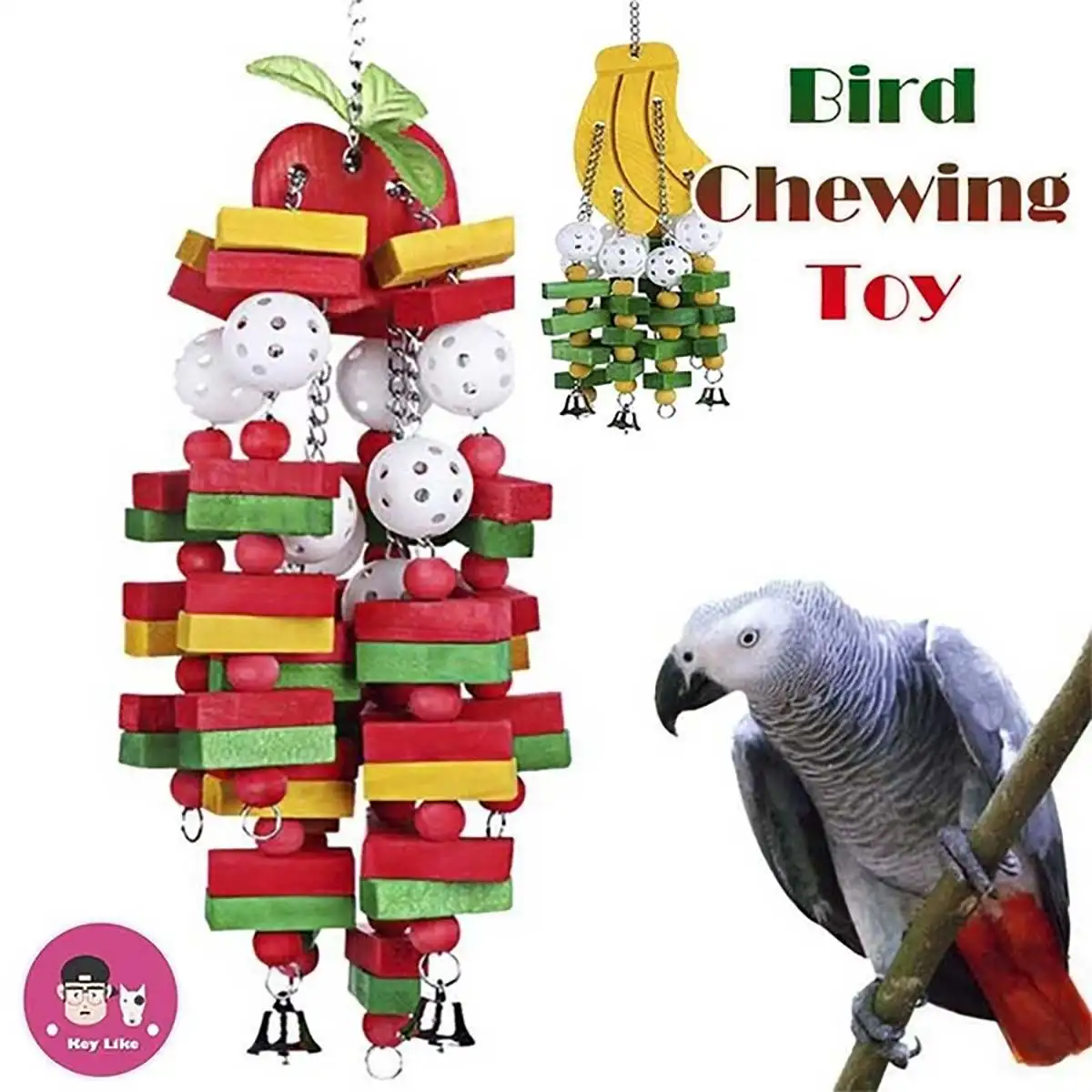 Игрушки для жевания птиц, играющие игрушки, большой средний питомец, попугай, Cockatiel Parakeet, красочные деревянные блоки, качели, пищевые игрушки