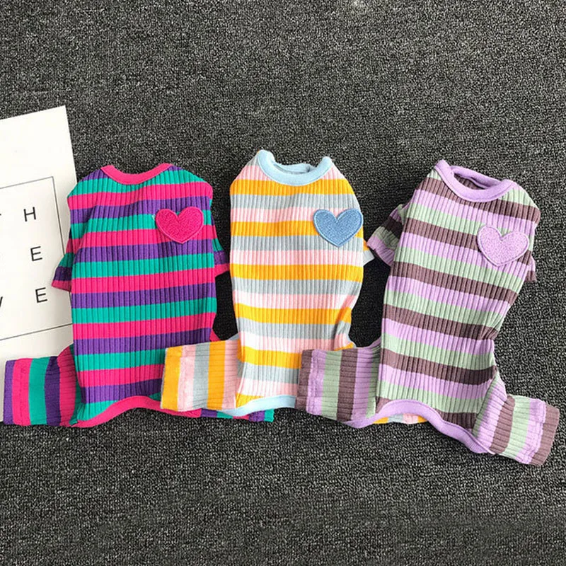100% хлопок, пижамы для собак, Цветной полосатый комбинезон для собак, зимний теплый для маленьких собак, Ши-тцу, мягкая Пижама, толстовка для д...