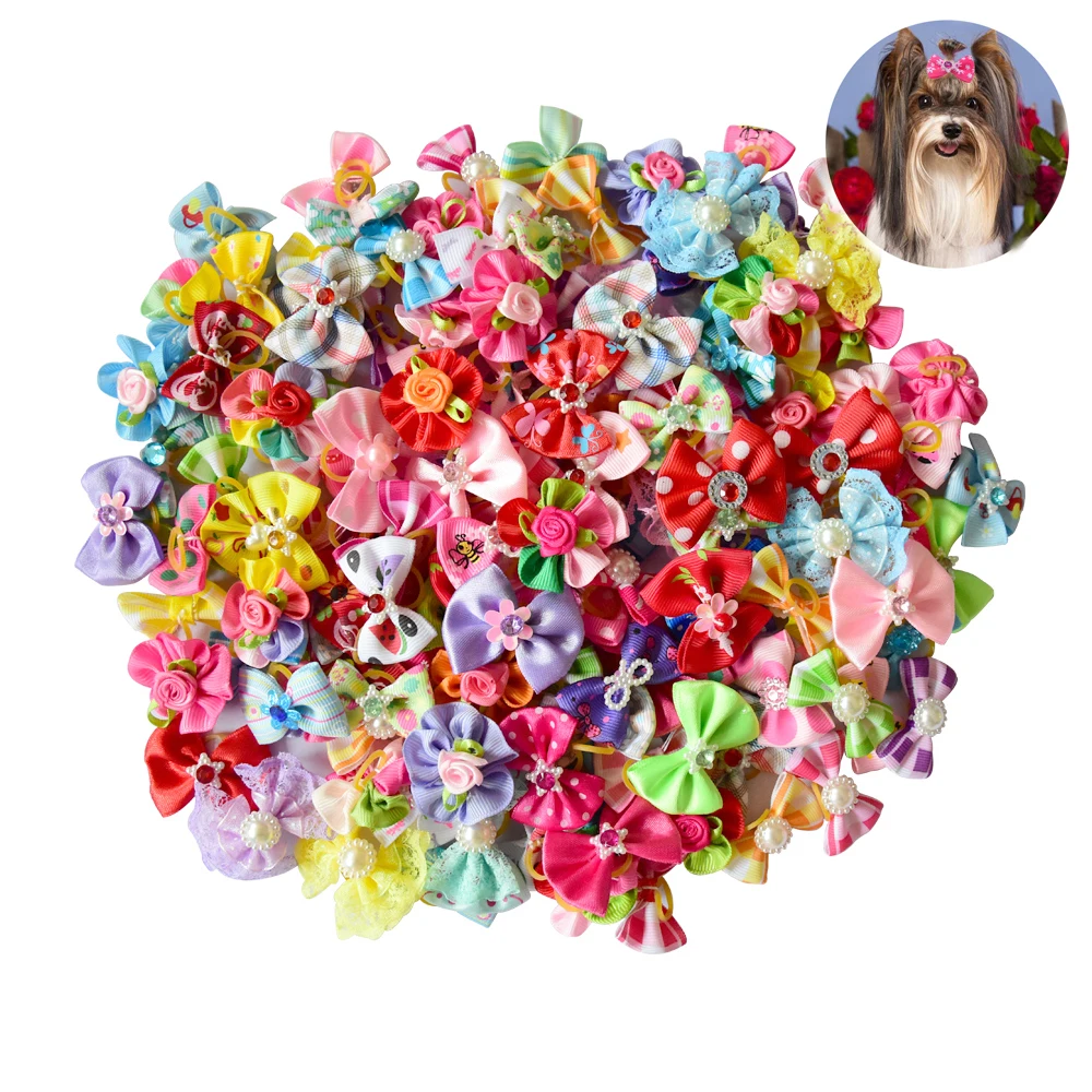 Новый 100/50/лот собачьи бантики Алмазный жемчуг стиль бантик для собаки собака аксессуары для волос pet shop собака аксессуары