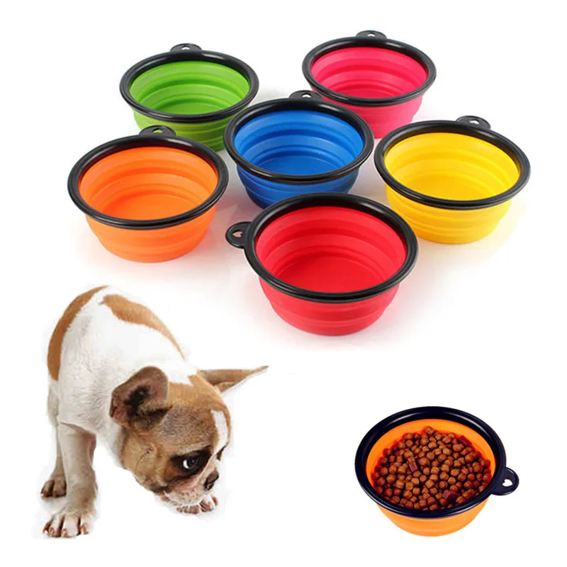Силиконовые складной собака чаша Карамельный цвет Открытый путешествия Портативный щенок Еда контейнерных блюдо