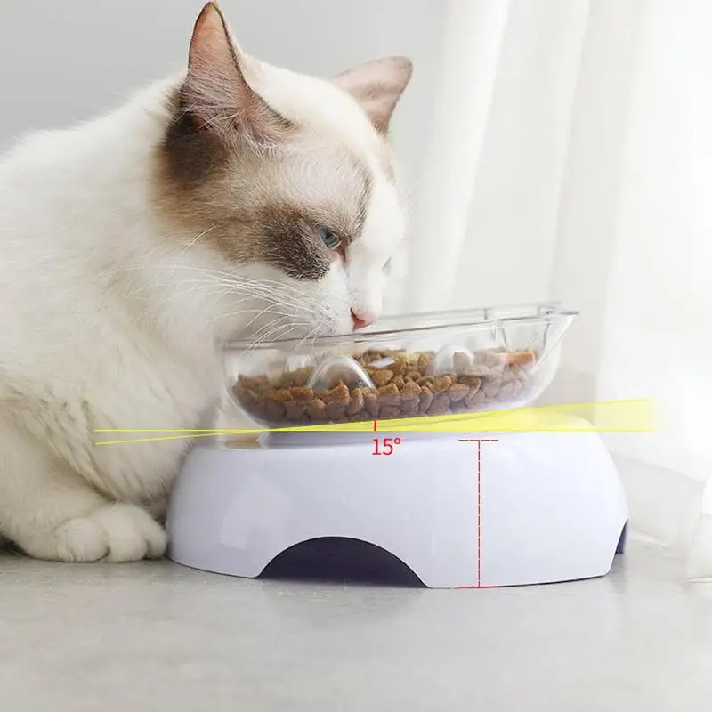 Регулируемый наклон 15 градусов кошачьи ушки форма для домашних кошек и собак миска для кормления одна двойная миска прозрачный легко мыть лук для домашних животных