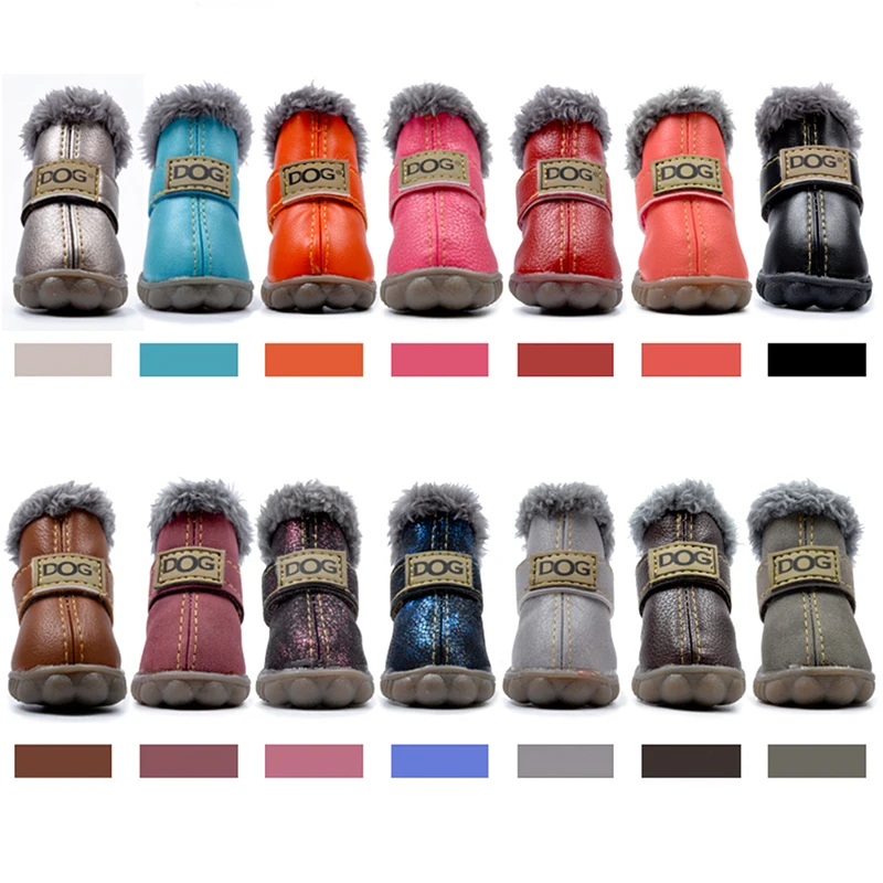 4 шт./компл. обувь для домашних собак зимние теплые ботинки Нескользящие Водонепроницаемые зимние ботинки из искусственной кожи для маленьк...