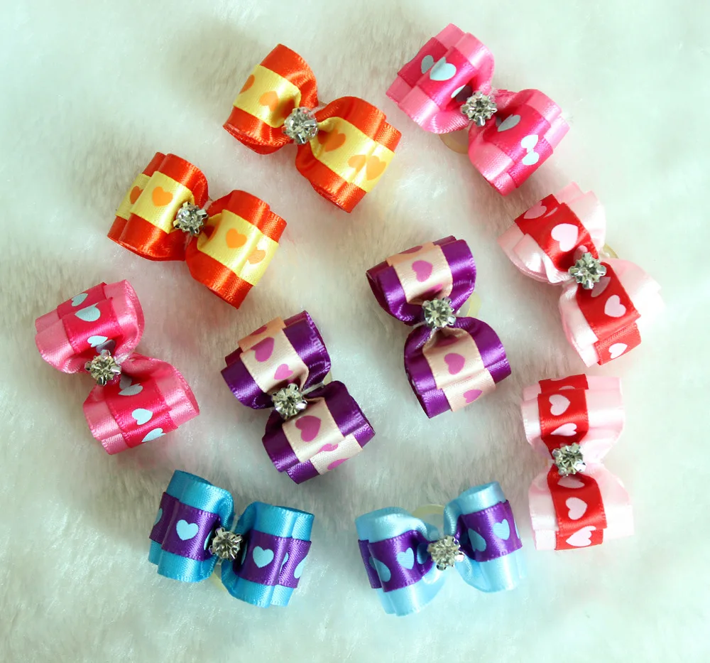 10 шт./лот ручной работы маленькая собака волосы луки Резиновая лента кошка заколка для волос день Святого Валентина Pet Уход за собакой аксес...