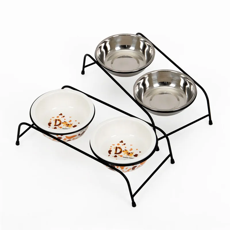 Новая модная миска-Кормушка для собак, железная рама, керамика из нержавеющей стали, двойная миска для собак, высококачественные противоскользящие принадлежности для домашних животных