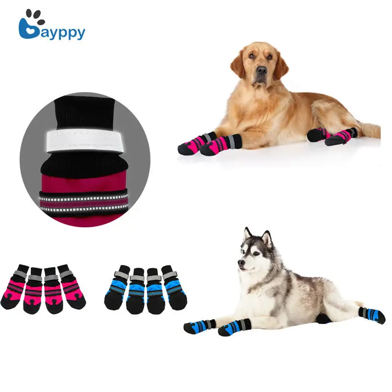 4 шт Водонепроницаемый собака обувь противоскользящие теплые Светоотражающие сапоги для домашних животных Paw протектор для малых средний б...
