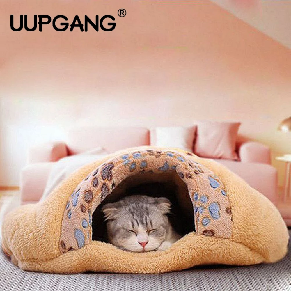 Зимний теплый домик для кошек, питомник, гнездо для кошек, спальный мешок для глубокого сна, полузакрытый домик для кошек, кровать для кошек, Маленькие Средние собаки, домашние животные, домашняя пещера