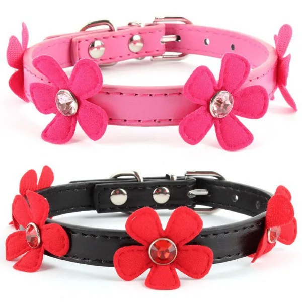 Регулируемая цветок приводит Средства ухода за кожей Шеи Ремень домашних Малый Собака Кошка искусственная кожа воротник пряжки XS размеры S,...