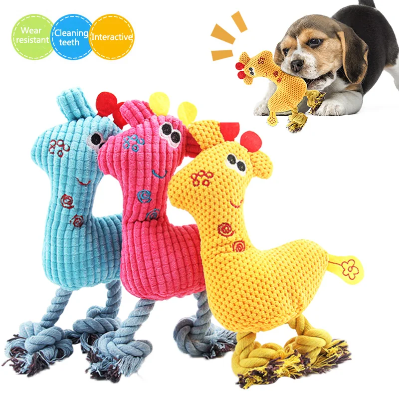 Собака игрушки-Жвачки для маленьких и крупных собак Жираф веревка из флиса Interative игрушка для домашнего животного писк щенок оленем для дома...